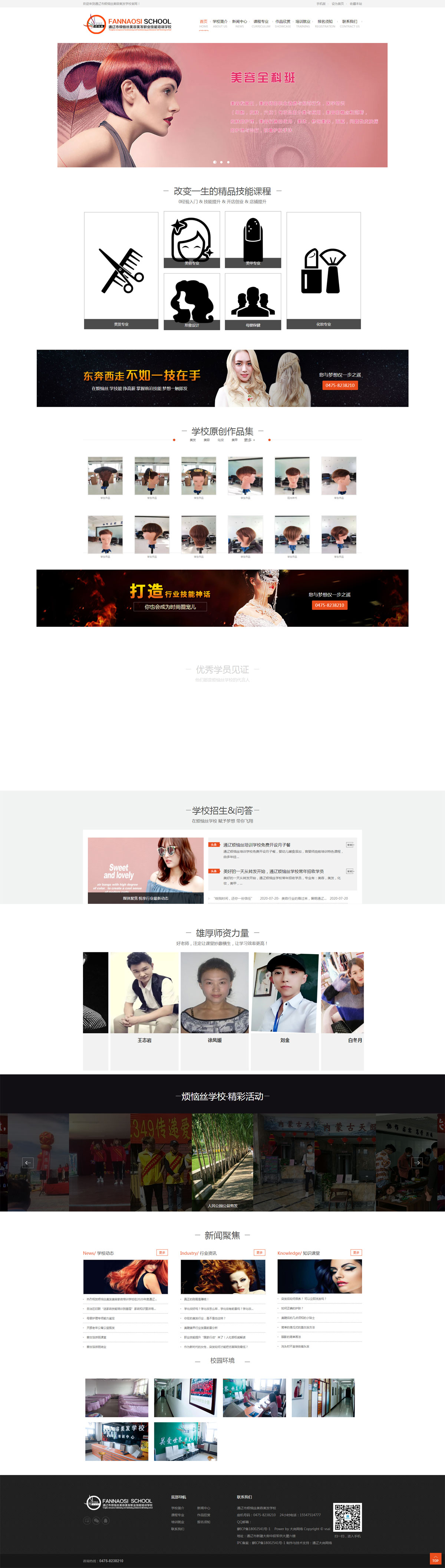 遼市煩惱絲美發(fā)美容專業(yè)學校建校于1987年,是內(nèi)蒙古勞動廳指定技術等級定點培訓單位,通遼勞動局批準并備案民政局注冊的一所具有近20年歷史的美容美發(fā)化妝攝影名校,通遼市青年就業(yè)培訓基地。學校位于內(nèi)蒙古通遼市站前長途汽車站北門西側,占地面積1200平方米,集教學,研修,實習,產(chǎn)品經(jīng)銷,食宿為一體的大 型培訓實體。